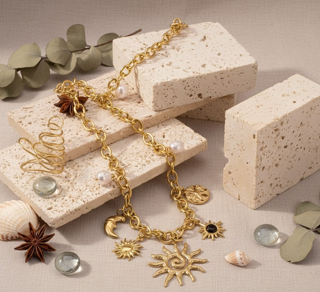 Fiche Technique : Collier Multi-Charms "Soleil & Astres"